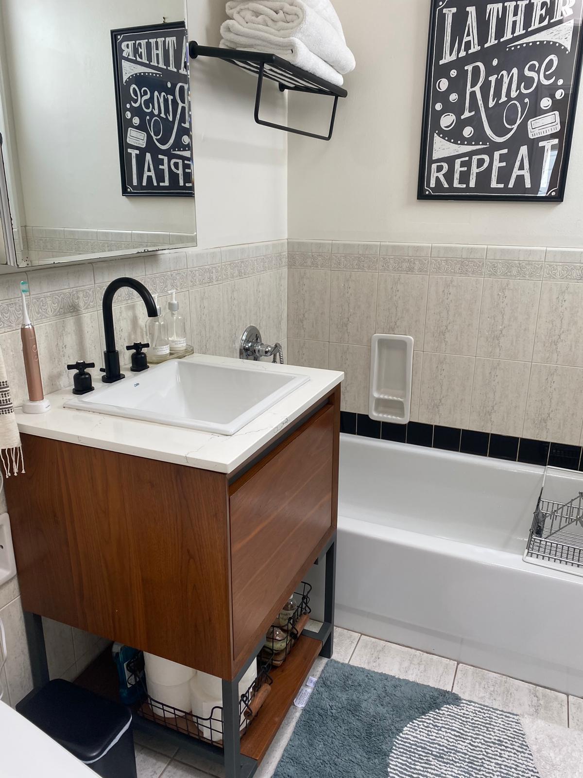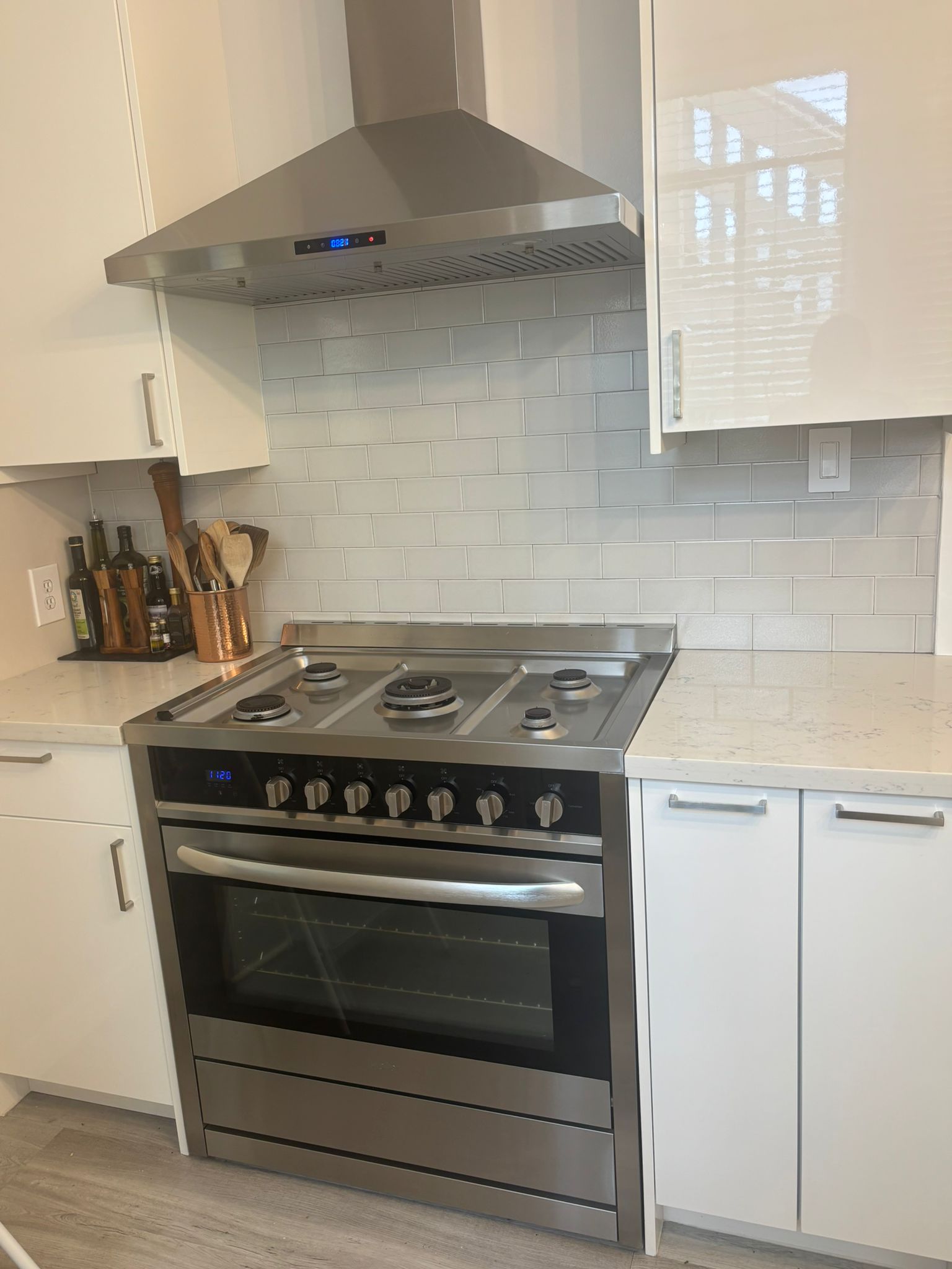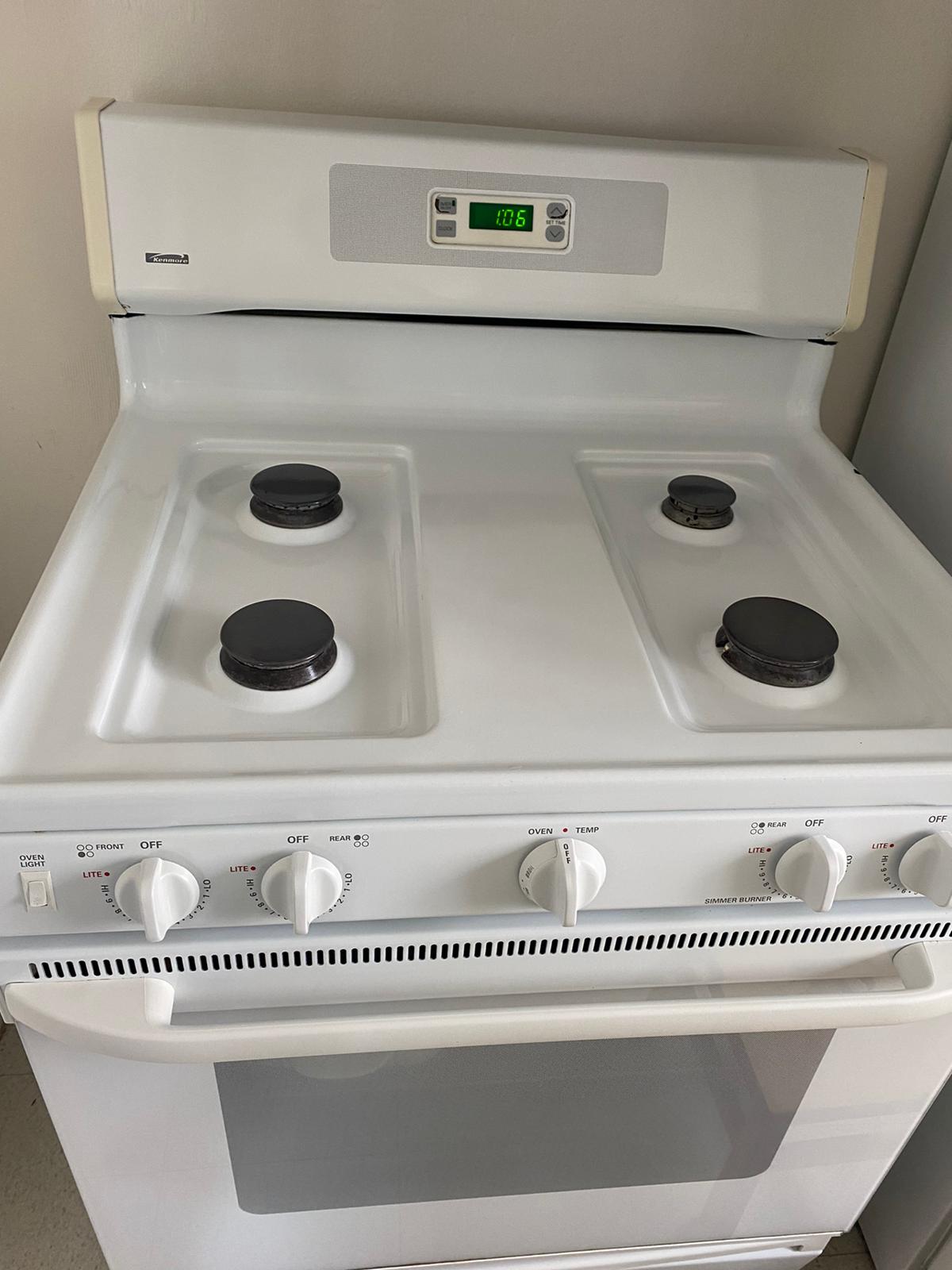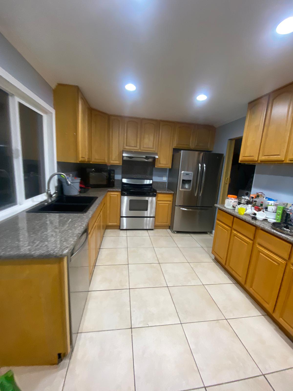 - Kitchen: Countertop, Fridge, Stove, Outside cabinets.